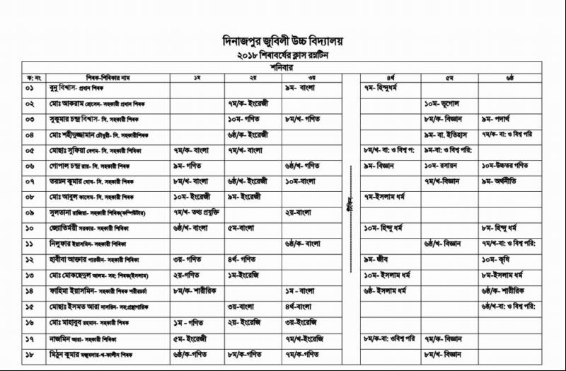 ক্লাস রুটিন (শনিবার-রবিবার)