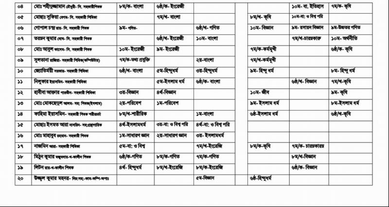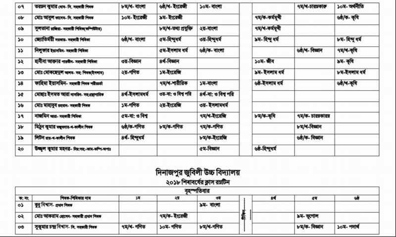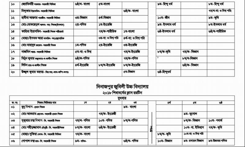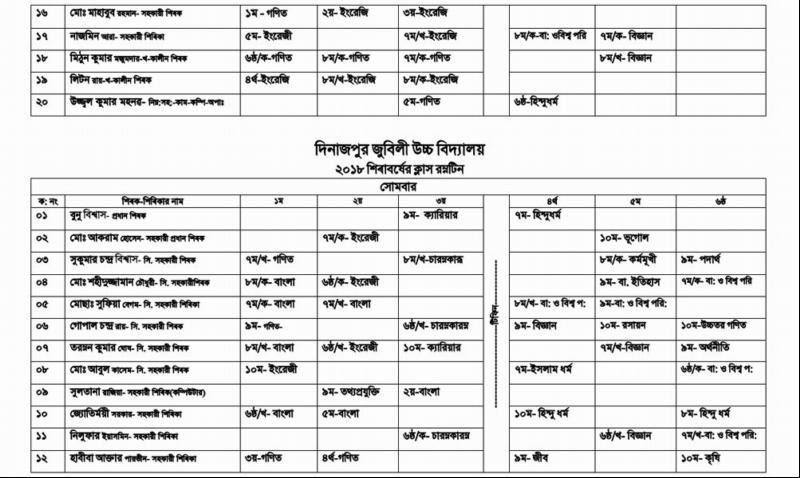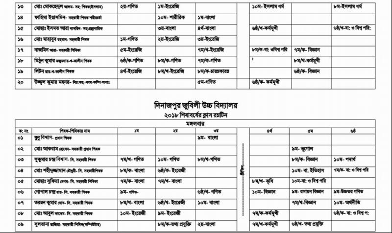 ২০১৭ শিক্ষাবর্ষের ক্লাস রুটিন
