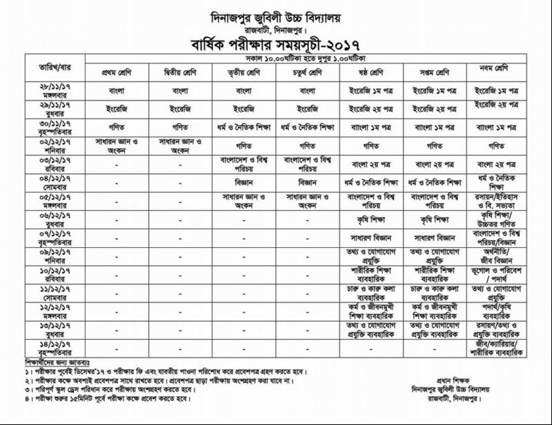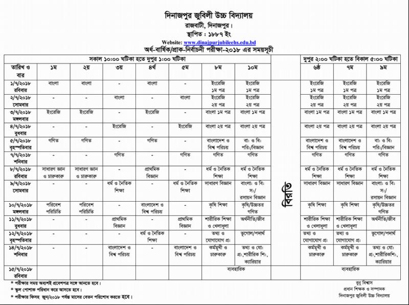 অর্ধ-বার্ষিক / প্রাক-নির্বাচনী পরীক্ষা-২০১৮ এর সময়সূচী