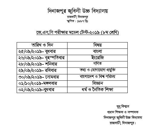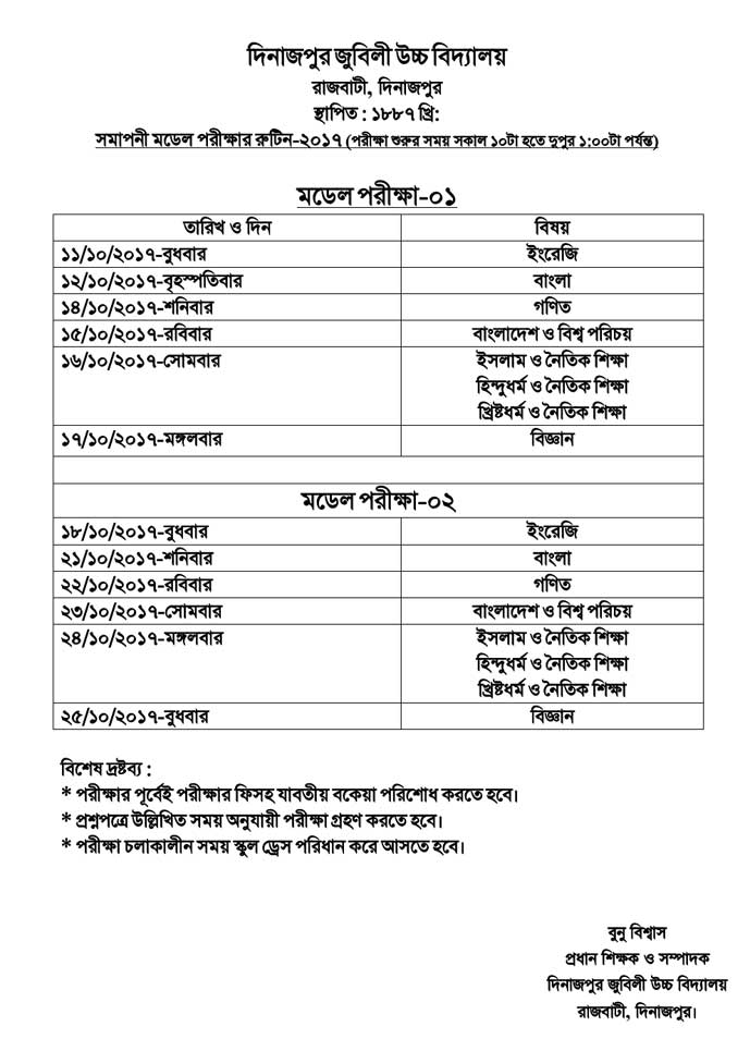 সমাপনী মডেল পরীক্ষার রুটিন-২০১৭ (পরীক্ষা শুরুর সময় সকাল ১০টা হতে দুপুর ১:০০টা পর্যন্ত)