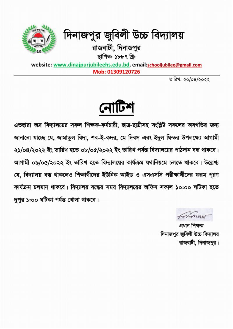 ইদুল ফিতর উপলক্ষ্যে বিদ্যালয় বন্ধ প্রসঙ্গে