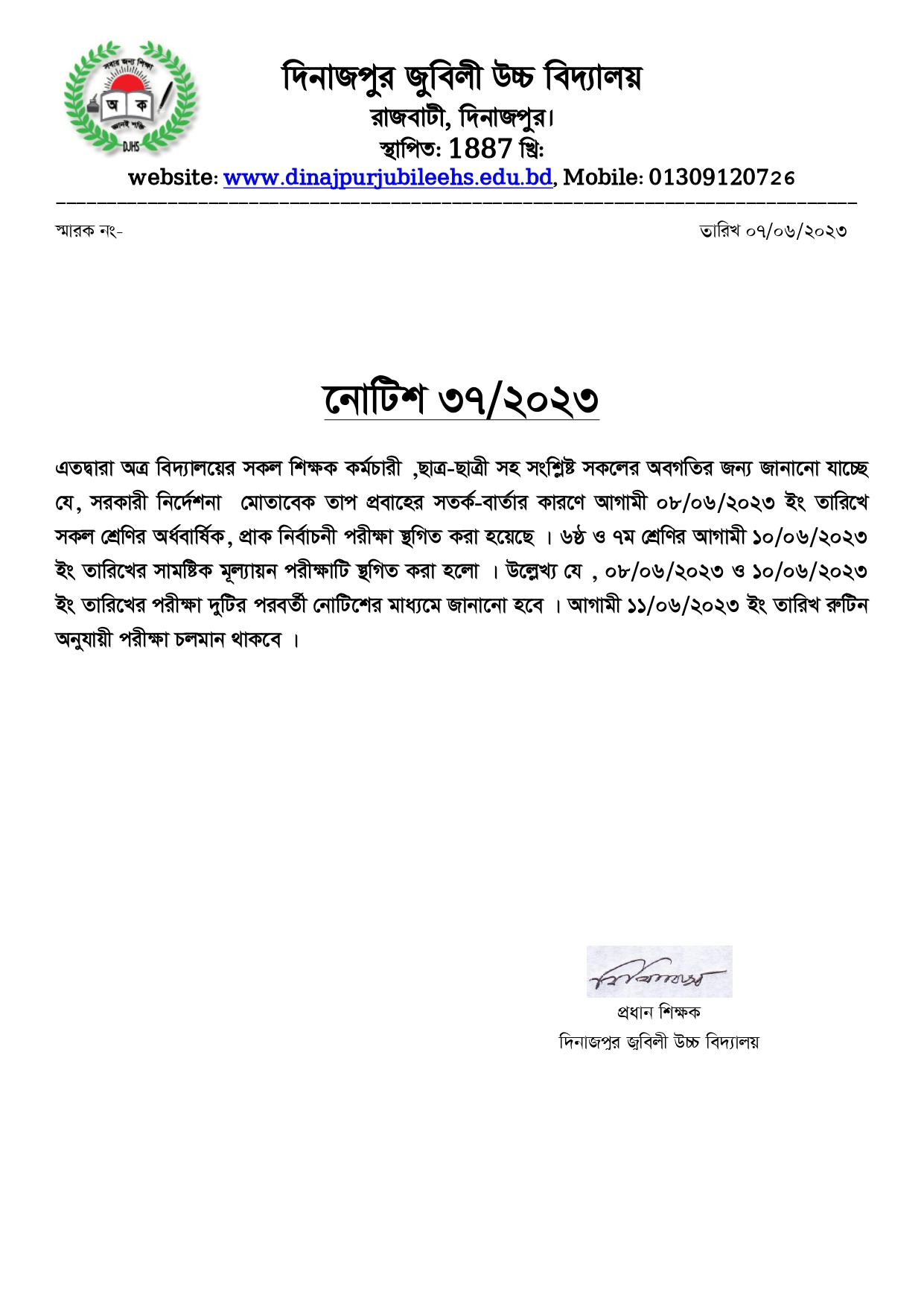 সরকারি নির্দেশনা অনুযায়ী তাপ প্রবাহের সতর্ক বার্তার কারণে পরীক্ষা বন্ধ প্রসঙ্গে