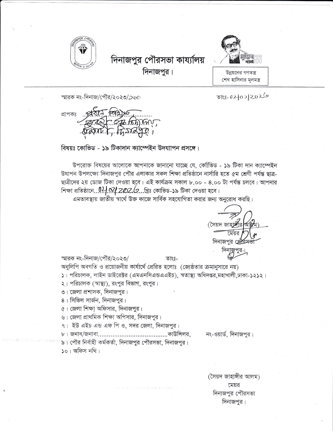 কোভিড-19 এর ২য় ডোজ টিকা প্রদান প্রসঙ্গে।