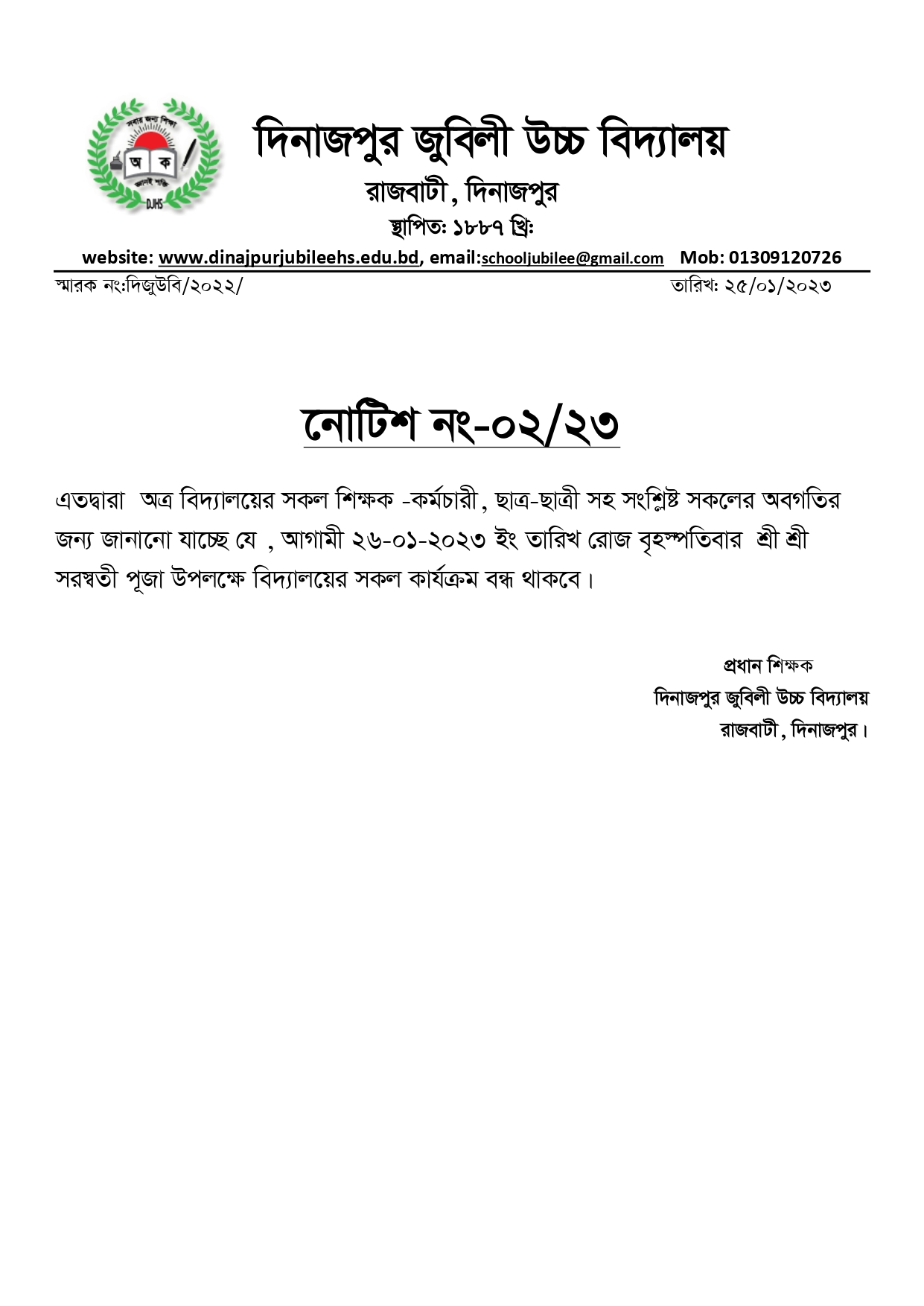 সরস্বতী পূজা উপলক্ষ্যে বিদ্যালয় কার্যক্রম বন্ধ প্রসঙ্গে