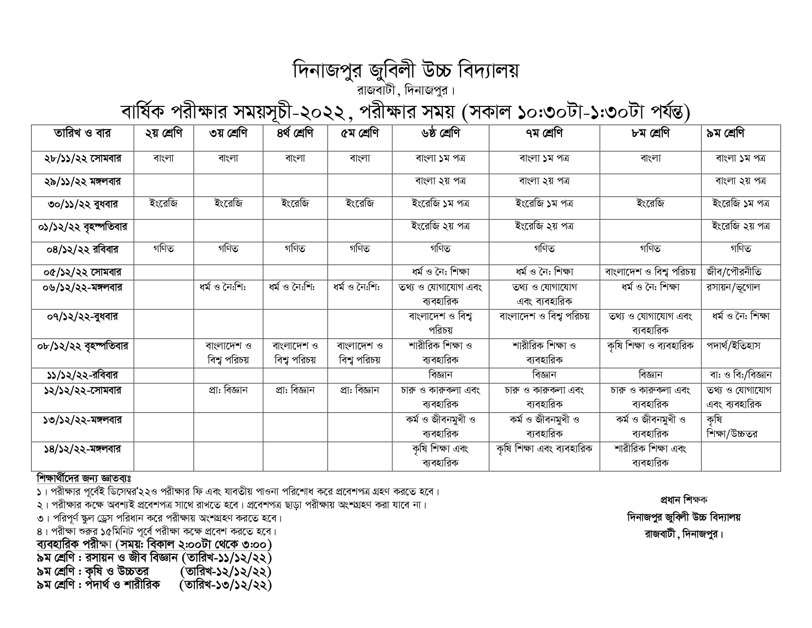 বার্ষিক পরীক্ষার সময়সূচী-2022