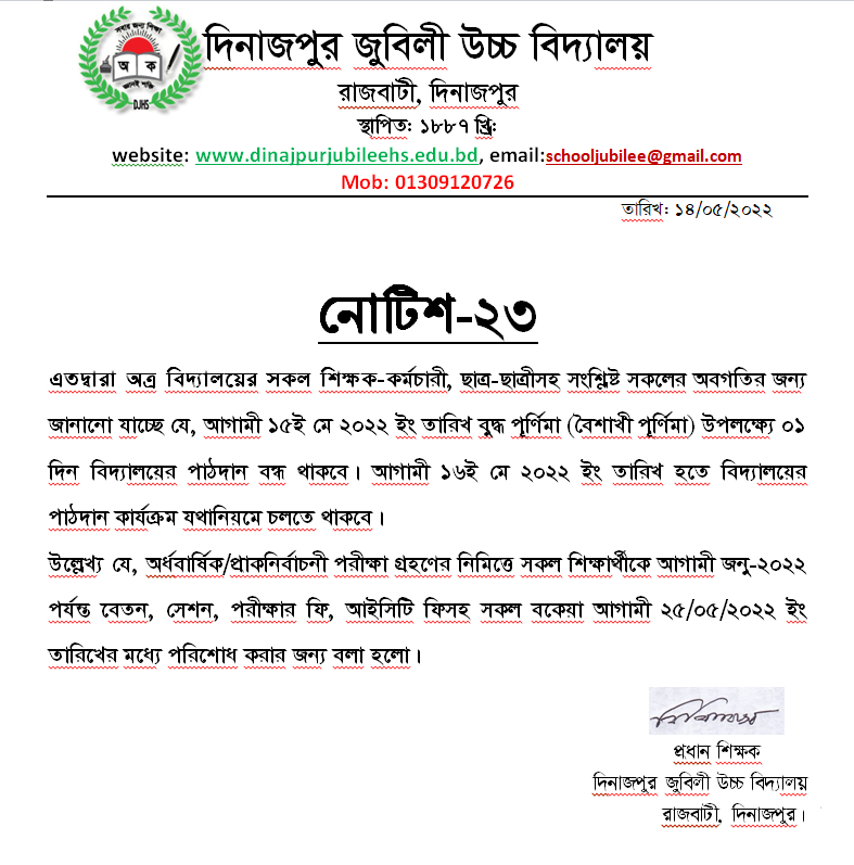 দিনাজপুর জুবিলী উচ্চ বিদ্যালয় এর অফিসিয়াল ওয়েবসাইটে আপনাকে স্বাগতম।