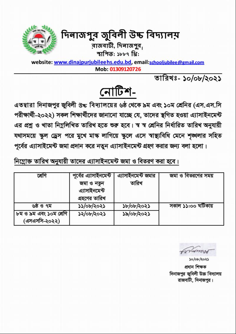 নতুন এ্যাসাইনমেন্ট বিতরণ ও জমা সংক্রান্ত নোটিশ-২০২১