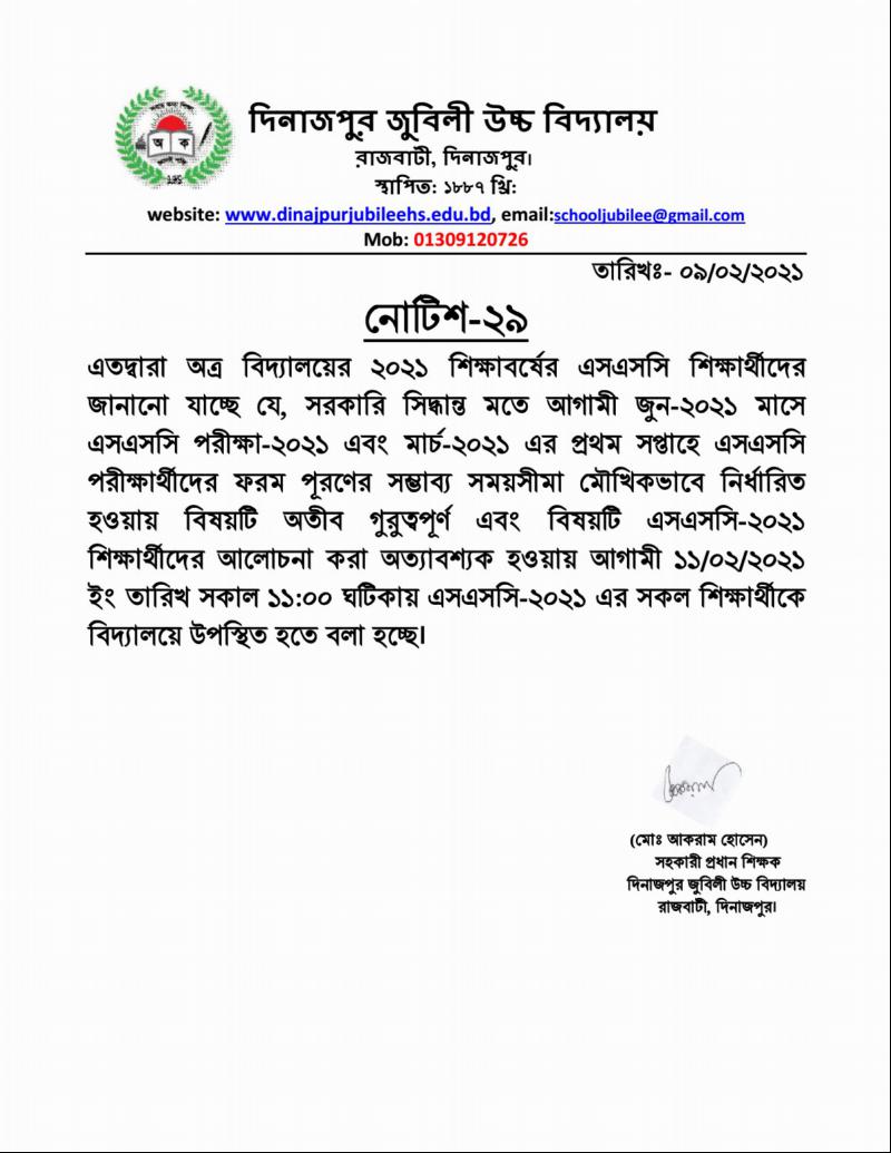 ২০২১ শিক্ষাবর্ষের এসএসসি শিক্ষার্থীদের গুরুত্বপূর্ণ নোটিশ ।