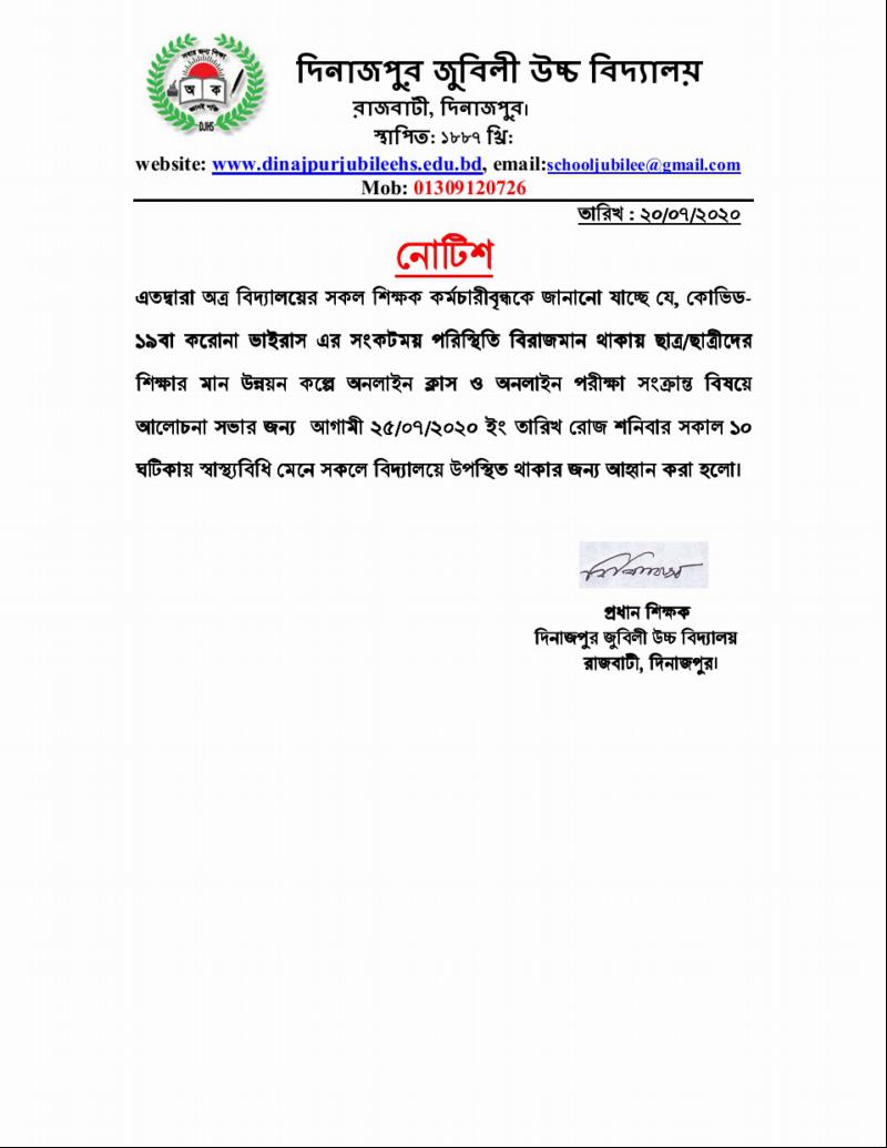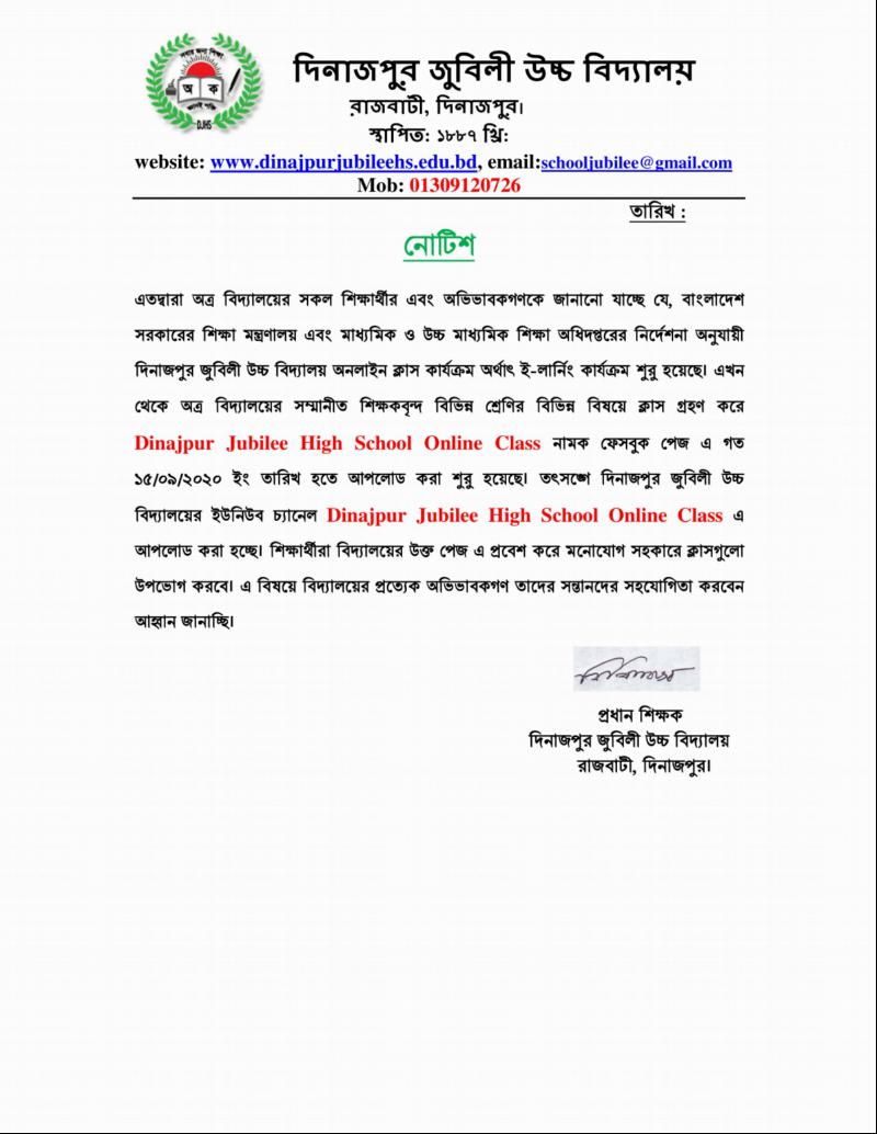 Dinajpur Jubilee High School Online Class