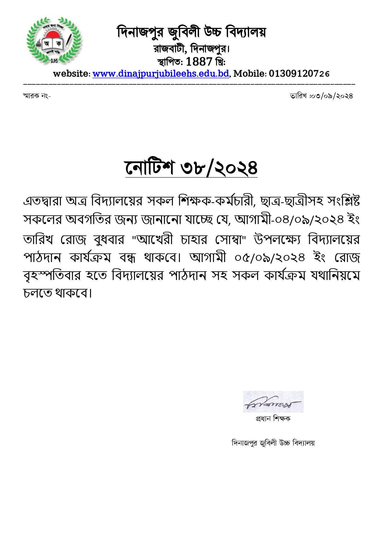 বিদ্যালয় সম্পর্কে জানতে ও বিদ্যালয়ের সকল তথ্য পেতে নিয়মিত বিদ্যালয়ের ওয়েবসাইটটি দেখুন।