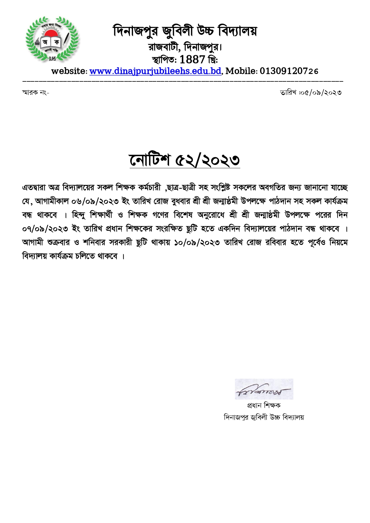 দিনাজপুর জুবিলী উচ্চ বিদ্যালয় এর অফিসিয়াল ওয়েবসাইটে আপনাকে স্বাগতম।