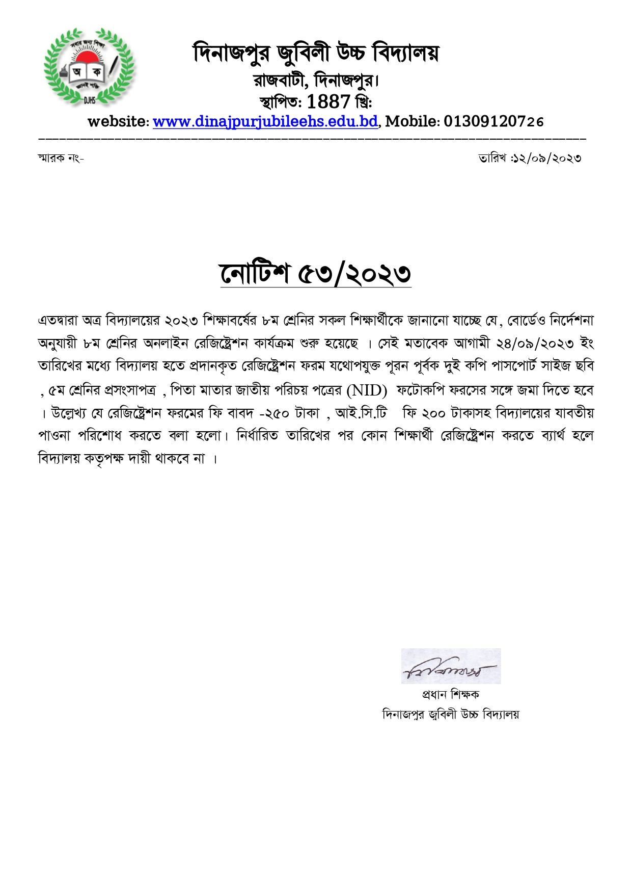 ৮ম শ্রেনির রেজিষ্ট্রেশন সংক্রান্ত নোটিশ প্রসঙ্গে